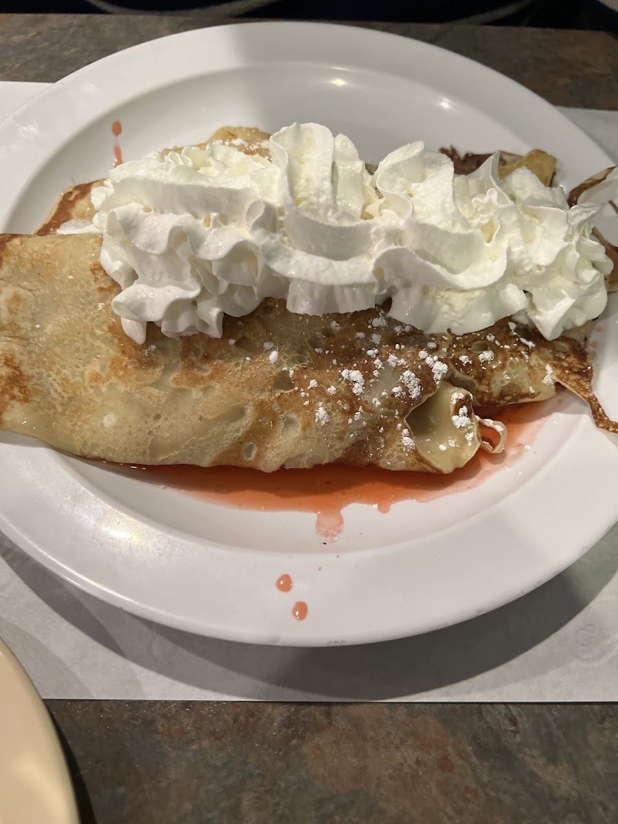 Nice little restaurant for breakfast, we were seated quickly and our waitress took care of us immediately. We both had crepes, mine was apple with a side of sausage patties and my wife’s was strawberry with a side of bacon. The crepes were huge and full of flavor. We recommend trying this place.